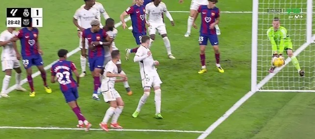 当时比赛进行到第28分钟,亚马尔小角度打门,皇马门将卢宁将球扑出,直播画面可以看到,卢宁几乎是在门线内捞出皮球。因为西甲没有门线技术,VAR最终判定球未完全过线,这也引发了巴萨方面的强烈不满。