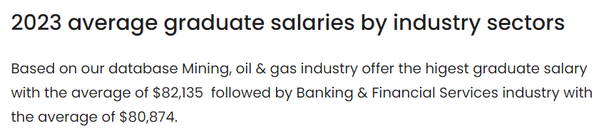 以行业来看,石油天然气矿业( Mining, oil & gas)毕业生薪酬最高,可达 82,000 澳元;