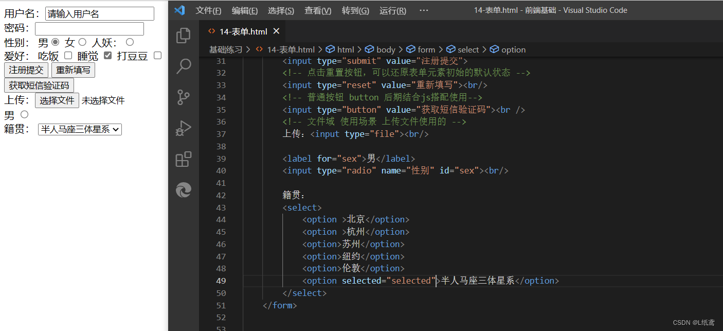 我们暂时不需要使用表单来提交数据,只需要写上form标签即可,后面我们学习服务器编程时会重新讲解的。