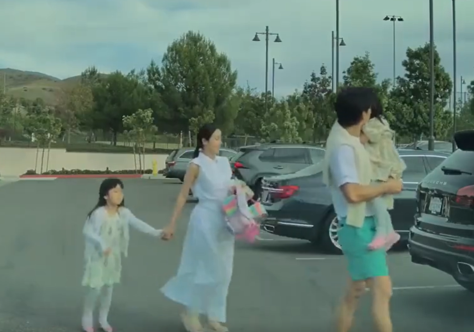 据悉,有网友在美国洛杉矶偶遇Rain和金泰熙接孩子放学,意外用行车记录仪拍下了一家四口同框的画面。
