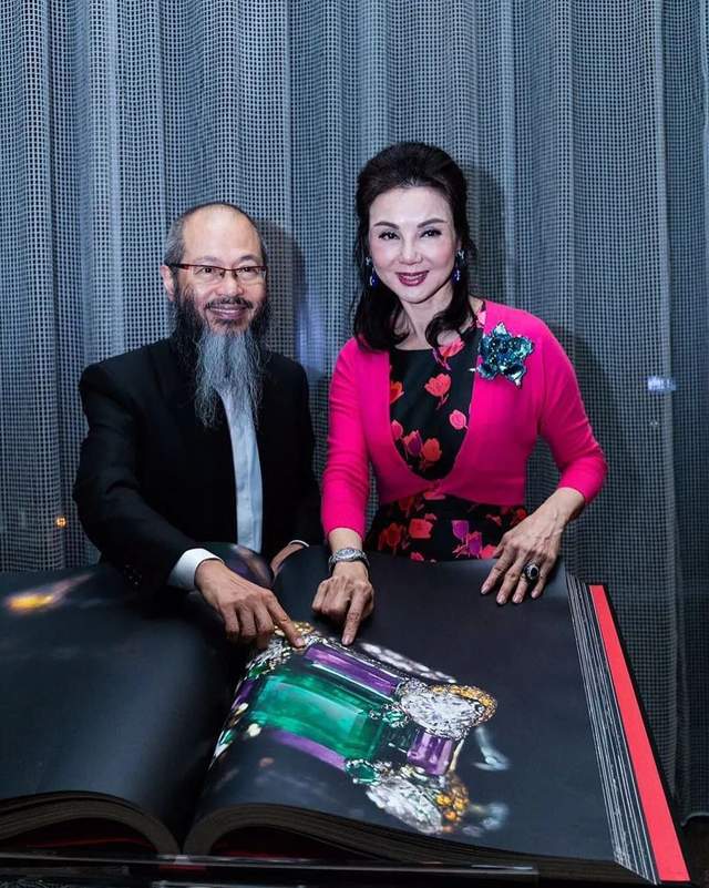 富豪林建岳前妻谢玲玲,她的珠宝盒里还有不少来自珠宝设计师Wallace Chan的作品,他家设计擅用各种彩宝,大气的中式风格也很有张力,册子上的大宝石也是谢玲玲的私人收藏。
