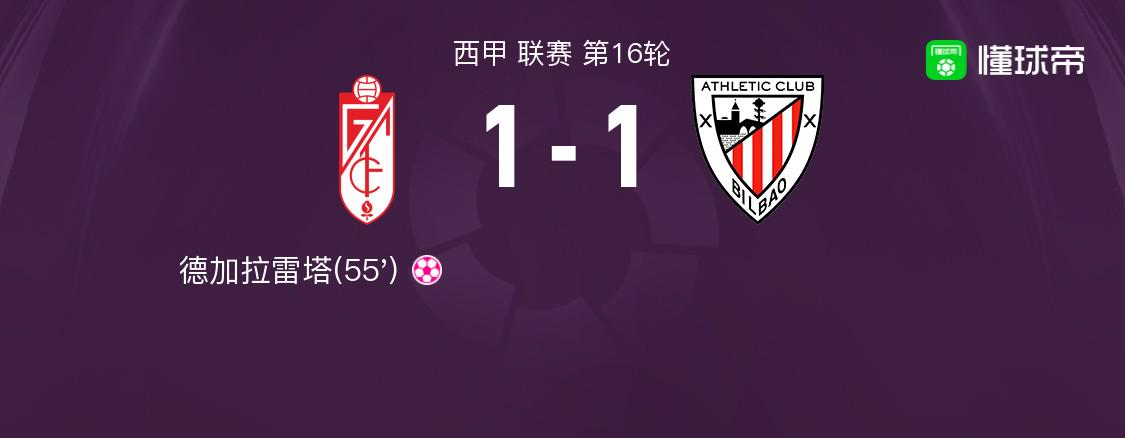 北京时间12月12日西甲 联赛 第16轮,格拉纳达主场对阵毕尔巴鄂竞技。格拉纳达。毕尔巴鄂竞技德加拉雷塔自摆乌龙。最终比分1-1。