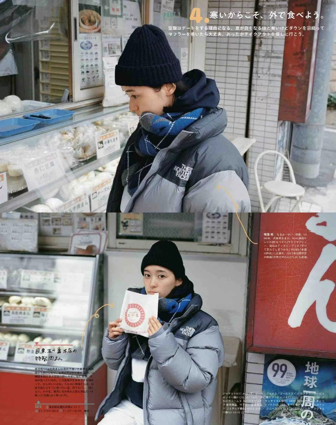 这里还想cue一下工装裤,它的缺点就是裤腿大多比较肥,搭配蓬松的羽绒服,从比例上来说肯定不是显高显瘦的搭配;但优点也很明显,工装裤风格强烈,比较帅气,可以打破羽绒单品的软萌感。 ▼