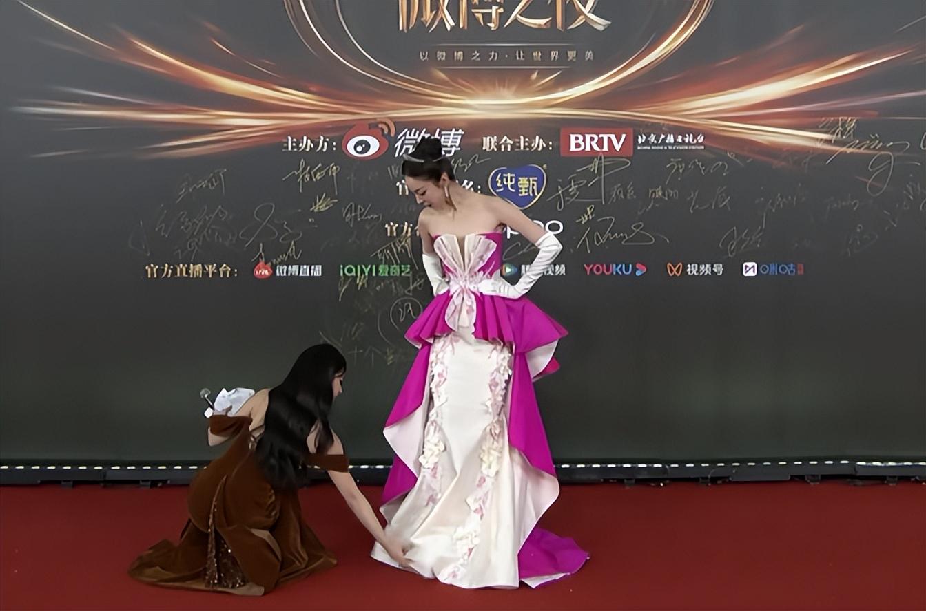 微博之夜红毯邀请的明星很多,为了节省时长,有些明星需要和别人一起走红毯。这就让整个场面显得很尴尬。