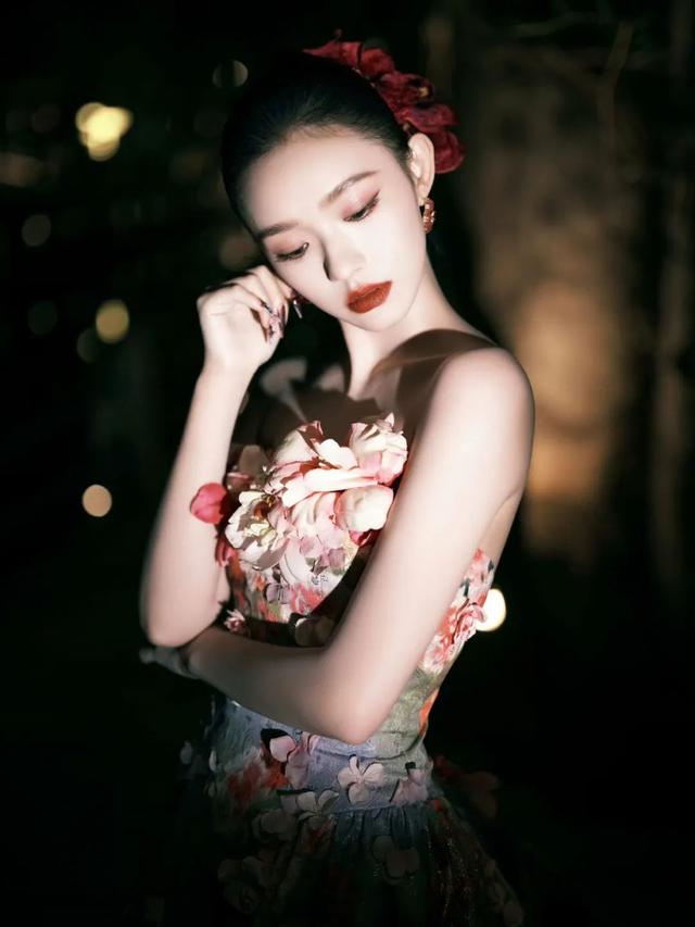 赵露思的的玫瑰千金妆,贵气十足,哑光的妆面和微微上挑的眼线,娇媚灵气,特别像森林里的小精灵~