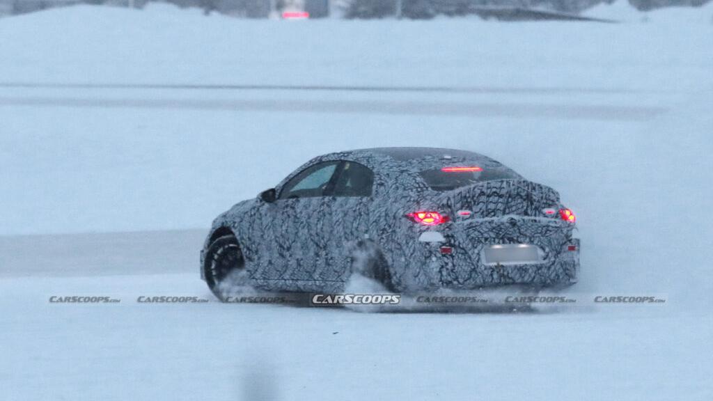海外媒体近日曝光了全新梅赛德斯-AMG CLA纯电动版冬季测试的谍照,这款车保持着CLA级独特的弧形车身轮廓,而唯一比较扎眼的就是那高高翘起的车尾设计。