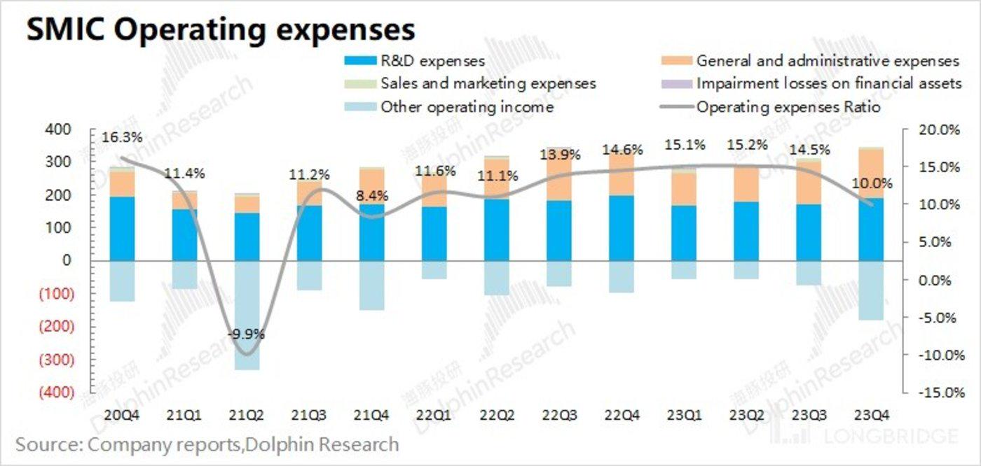 从经营开支角度看,本季度中芯国际经营开支是 1.68 亿美元,有所减少,主要是本季度其他经营收入增加所致。