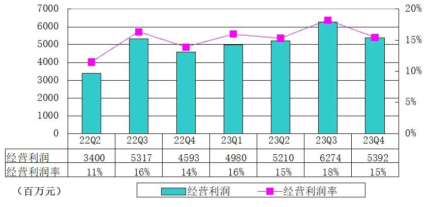 百度2023年第四季度经营利润为54亿元(7.59亿美元)。百度核心经营利润为47亿元(6.57亿美元),百度核心经营利润率为17%。非公认会计准则下经营利润为71亿元(9.96亿美元)。非公认会计准则下百度核心经营利润为62亿元(8.73亿美元),及非公认会计准则下百度核心经营利润率为23%。