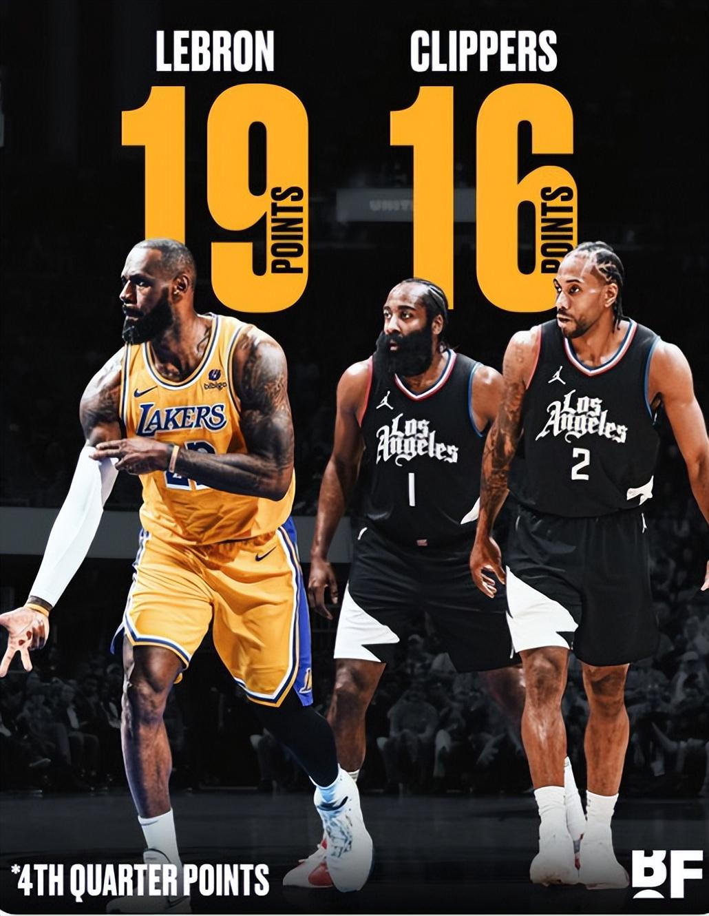 恐怖如斯,勒布朗-詹姆斯VS快船一战末节12中7+三分8中5拿下19分,而快船全队17中7拿19分,终场前9.3秒他防下小卡的绝平后仰中距离,拼下后场篮板后长传雷迪什暴扣锁定胜局。本赛季湖人面对快船的3场比赛都是逆转,分别逆转9分、19分、21分,詹姆斯本人本赛季面对快船3胜0负。